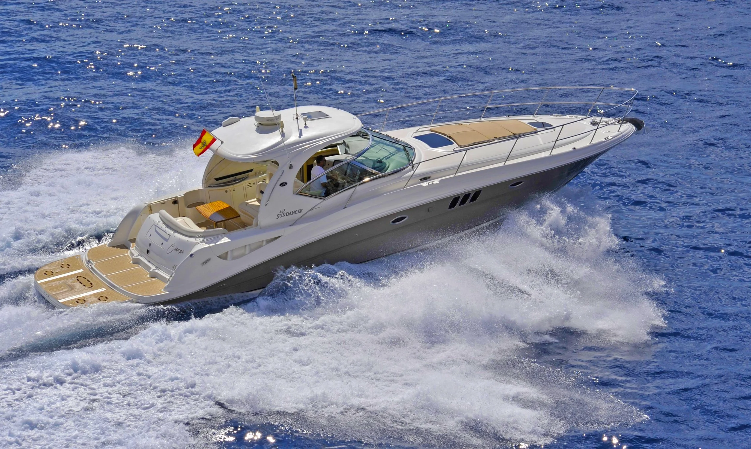 Embarcación de 15 m para 11 personas, ideal para recorrer las calas del sur de Mallorca con comodidad y estilo. Cuenta con plataforma trasera sumergible, perfecta para disfrutar del baño y el mar al máximo.